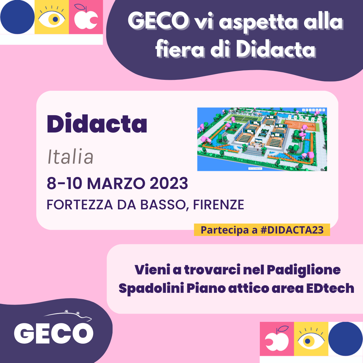 GECO For School e il suo team ti aspettano a DIDACTA Italia, il più importante appuntamento fieristico sull'innovazione del mondo della scuola.